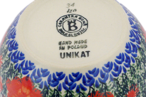 This Lone Poppy 5" Bowl was handmade and hand decorated in Boleslawiec, Poland by skilled artisans according to old traditional methods. This Polish stoneware is microwave, dishwasher, freezer, and oven safe up to 480°F. It does not contain lead or cadmium. It is part of the Lone Poppy Collection.