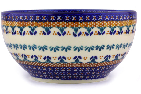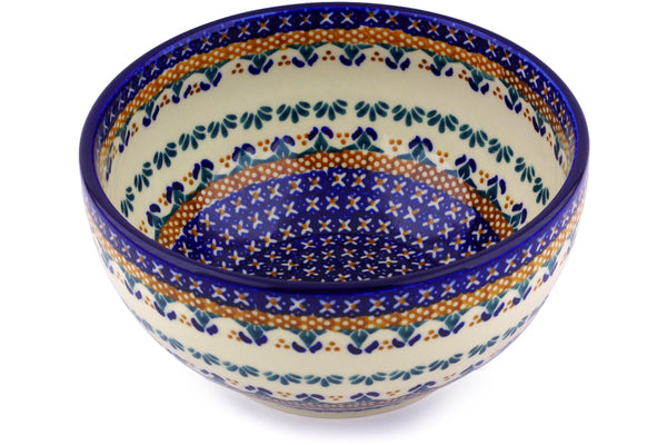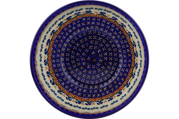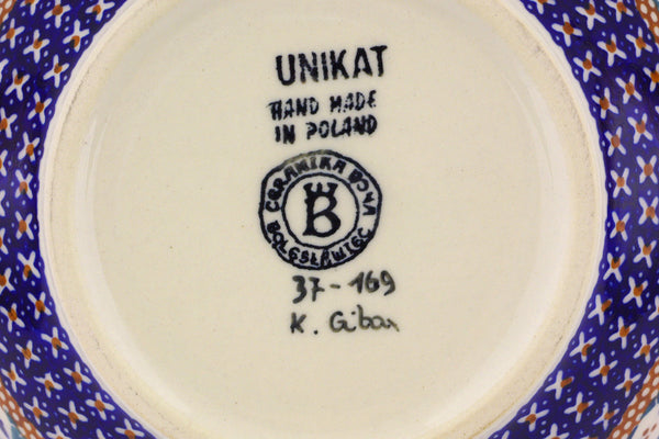 This Blue Cress 7" Bowl was handmade and hand decorated in Boleslawiec, Poland by skilled artisans according to old traditional methods. This is a Polish pottery Signature Unikat, which means that it has been hand painted with both sponges and brushes and it is signed by the artist who painted it. Unikat pieces are the most intricate works of art. Larger Unikat items take hours of very careful work to finish. This Polish stoneware is microwave, dishwasher, freezer, and oven safe up to 480°F. It does not contain lead or cadmium. It is part of the Blue Cress Collection.