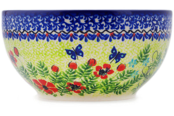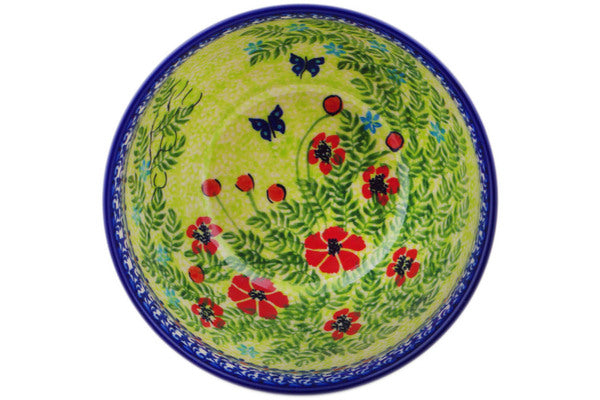 This Metamorphosis 7" Bowl was handmade and hand decorated in Boleslawiec, Poland by skilled artisans according to old traditional methods. This Polish stoneware is microwave, dishwasher, freezer, and oven safe up to 480°F. It does not contain lead or cadmium. It is part of the Metamorphosis Collection.
