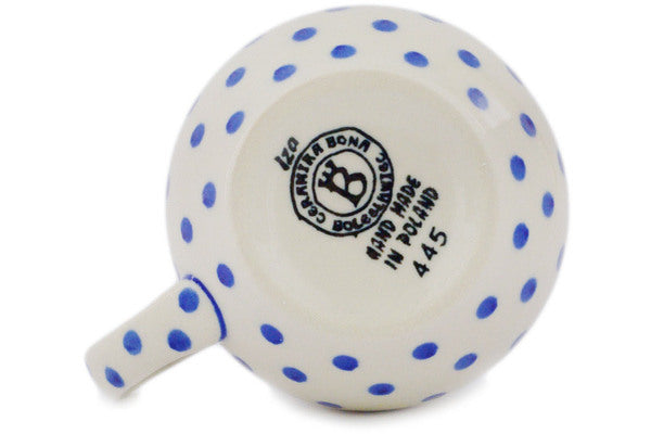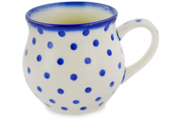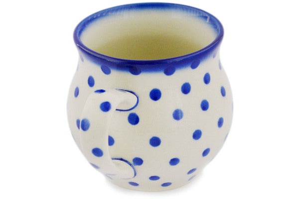This Blue Polka Dot 12 oz Bubble Mug was handmade and hand decorated in Boleslawiec, Poland by skilled artisans according to old traditional methods. This Polish stoneware is microwave, dishwasher, freezer, and oven safe up to 480°F. It does not contain lead or cadmium. It is part of the Blue Polka Dot Collection.