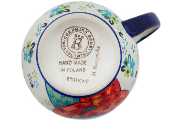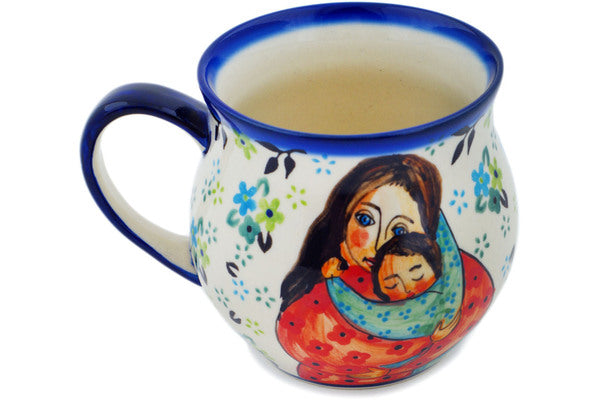 This A Mother's Love 13 oz Bubble Mug was handmade and hand decorated in Boleslawiec, Poland by skilled artisans according to old traditional methods. This is a Polish pottery Signature Unikat, which means that it has been hand painted with both sponges and brushes and it is signed by the artist who painted it. Unikat pieces are the most intricate works of art. Larger Unikat items take hours of very careful work to finish. This Polish stoneware is microwave, dishwasher, freezer, and oven safe up to 480°F. It does not contain lead or cadmium. It is part of the A Mother's Love Collection.