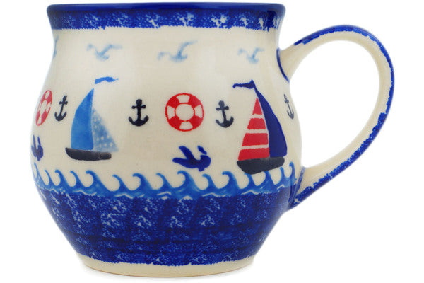 This Sweet Sailboats 12 oz Bubble Mug was handmade and hand decorated in Boleslawiec, Poland by skilled artisans according to old traditional methods. This Polish stoneware is microwave, dishwasher, freezer, and oven safe up to 480°F. It does not contain lead or cadmium. It is part of the Sweet Sailboats Collection.