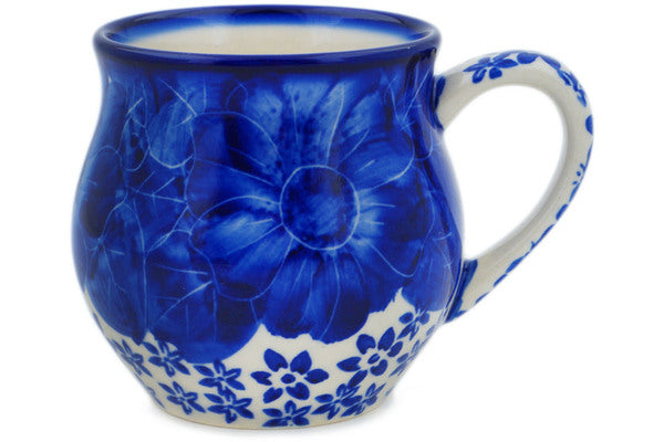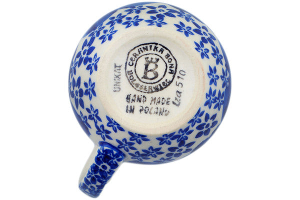 This Divine Cobalt 8 oz Bubble Mug was handmade and hand decorated in Boleslawiec, Poland by skilled artisans according to old traditional methods. This is a Polish pottery Signature Unikat, which means that it has been hand painted with both sponges and brushes and it is signed by the artist who painted it. Unikat pieces are the most intricate works of art. Larger Unikat items take hours of very careful work to finish. This Polish stoneware is microwave, dishwasher, freezer, and oven safe up to 480°F. It does not contain lead or cadmium. It is part of the Divine Cobalt Collection.