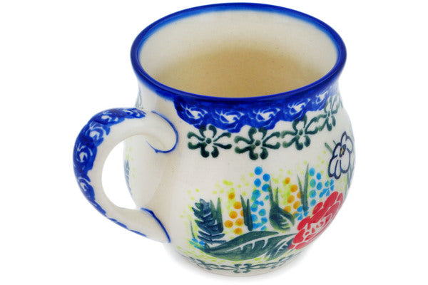 This Fresh Happiness 8 oz Bubble Mug was handmade and hand decorated in Boleslawiec, Poland by skilled artisans according to old traditional methods. This is a Polish pottery Signature Unikat, which means that it has been hand painted with both sponges and brushes and it is signed by the artist who painted it. Unikat pieces are the most intricate works of art. Larger Unikat items take hours of very careful work to finish. This Polish stoneware is microwave, dishwasher, freezer, and oven safe up to 480°F. It does not contain lead or cadmium. It is part of the Fresh Happiness Collection.