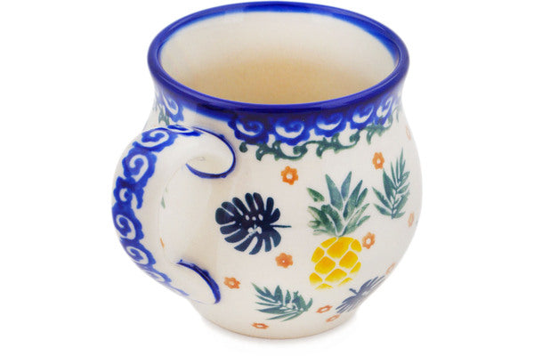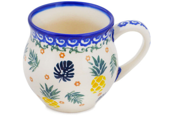This Pineapple Parade 8 oz Bubble Mug was handmade and hand decorated in Boleslawiec, Poland by skilled artisans according to old traditional methods. This Polish stoneware is microwave, dishwasher, freezer, and oven safe up to 480°F. It does not contain lead or cadmium. It is part of the Pineapple Parade Collection.