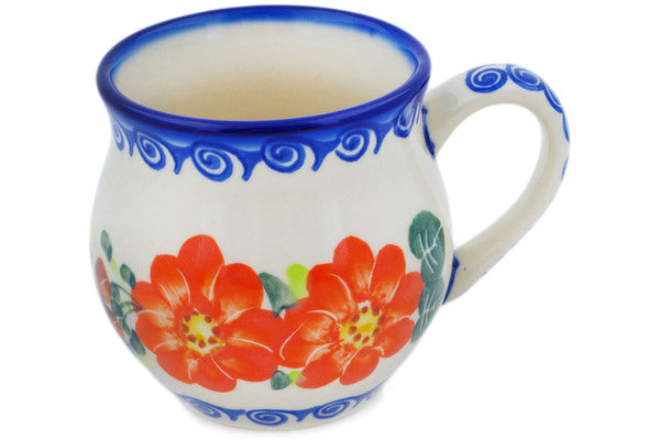This Red Blossom 8 oz Bubble Mug was handmade and hand decorated in Boleslawiec, Poland by skilled artisans according to old traditional methods. This Polish stoneware is microwave, dishwasher, freezer, and oven safe up to 480°F. It does not contain lead or cadmium. It is part of the Red Blossom Collection.