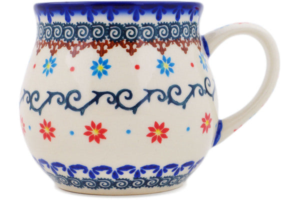 This Sunflower Dance 8 oz Bubble Mug was handmade and hand decorated in Boleslawiec, Poland by skilled artisans according to old traditional methods. This Polish stoneware is microwave, dishwasher, freezer, and oven safe up to 480°F. It does not contain lead or cadmium. It is part of the Sunflower Dance Collection.
