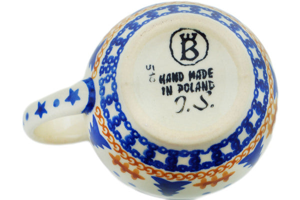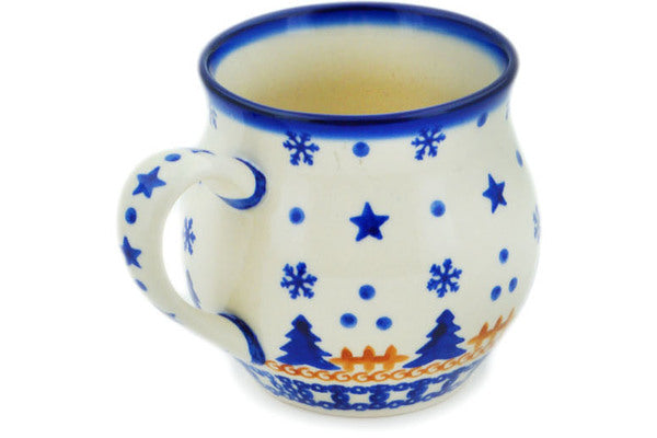 This Winter Snow 8 oz Bubble Mug was handmade and hand decorated in Boleslawiec, Poland by skilled artisans according to old traditional methods. This Polish stoneware is microwave, dishwasher, freezer, and oven safe up to 480°F. It does not contain lead or cadmium. It is part of the Winter Snow Collection.