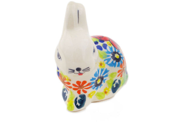 This Bold Poppies 3" Bunny Figurine was handmade and hand decorated in Boleslawiec, Poland by skilled artisans according to old traditional methods. This is a Polish pottery Signature Unikat, which means that it has been hand painted with both sponges and brushes and it is signed by the artist who painted it. Unikat pieces are the most intricate works of art. Larger Unikat items take hours of very careful work to finish. This Polish stoneware is microwave, dishwasher, freezer, and oven safe up to 480°F. It does not contain lead or cadmium. It is part of the Bold Poppies Collection.