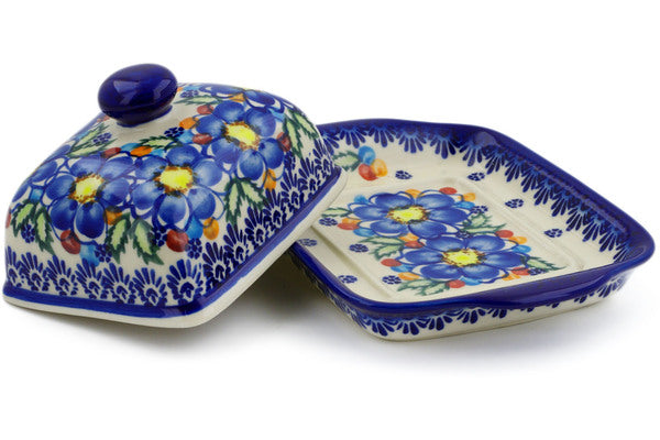This Lightbug Garden 7" Butter Dish was handmade and hand decorated in Boleslawiec, Poland by skilled artisans according to old traditional methods. This is a Polish pottery Signature Unikat, which means that it has been hand painted with both sponges and brushes and it is signed by the artist who painted it. Unikat pieces are the most intricate works of art. Larger Unikat items take hours of very careful work to finish. This Polish stoneware is microwave, dishwasher, freezer, and oven safe up to 480°F. It does not contain lead or cadmium. It is part of the Lightbug Garden Collection.