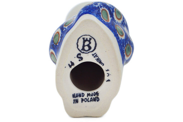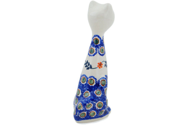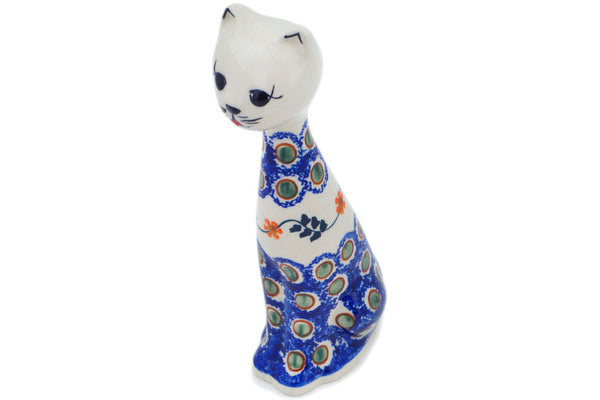 This Sunflower Peacock 10" Cat Figurine was handmade and hand decorated in Boleslawiec, Poland by skilled artisans according to old traditional methods. This Polish stoneware is microwave, dishwasher, freezer, and oven safe up to 480°F. It does not contain lead or cadmium. It is part of the Sunflower Peacock Collection.