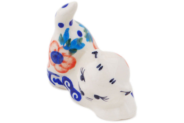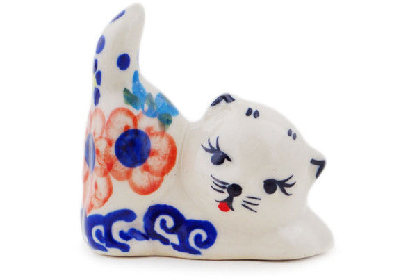 This Flower Star 2" Cat Figurine was handmade and hand decorated in Boleslawiec, Poland by skilled artisans according to old traditional methods. This Polish stoneware is microwave, dishwasher, freezer, and oven safe up to 480°F. It does not contain lead or cadmium. It is part of the Flower Star Collection.