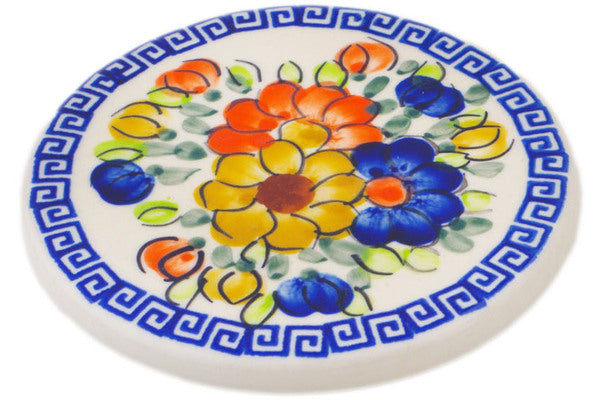 This Fall Garden 4" Coaster was handmade and hand decorated in Boleslawiec, Poland by skilled artisans according to old traditional methods. This is a Polish pottery Signature Unikat, which means that it has been hand painted with both sponges and brushes and it is signed by the artist who painted it. Unikat pieces are the most intricate works of art. Larger Unikat items take hours of very careful work to finish. This Polish stoneware is microwave, dishwasher, freezer, and oven safe up to 480°F. It does not contain lead or cadmium. It is part of the Fall Garden Collection.