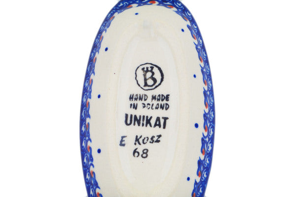 This Cardinal's Home 6" Condiment Dish was handmade and hand decorated in Boleslawiec, Poland by skilled artisans according to old traditional methods. This is a Polish pottery Signature Unikat, which means that it has been hand painted with both sponges and brushes and it is signed by the artist who painted it. Unikat pieces are the most intricate works of art. Larger Unikat items take hours of very careful work to finish. This Polish stoneware is microwave, dishwasher, freezer, and oven safe up to 480°F. It does not contain lead or cadmium. It is part of the Cardinal's Home Collection.