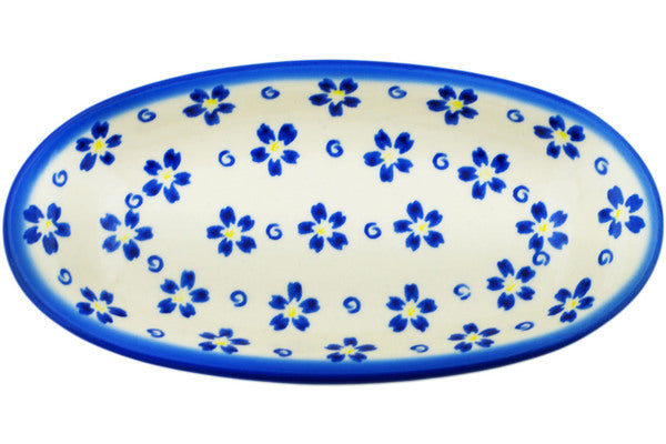 This Forget Me Not Swirls 6" Condiment Dish was handmade and hand decorated in Boleslawiec, Poland by skilled artisans according to old traditional methods. This Polish stoneware is microwave, dishwasher, freezer, and oven safe up to 480°F. It does not contain lead or cadmium. It is part of the Forget Me Not Swirls Collection.