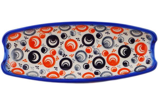 This Red Peacock Eye 9" Corn Tray was handmade and hand decorated in Boleslawiec, Poland by skilled artisans according to old traditional methods. This Polish stoneware is microwave, dishwasher, freezer, and oven safe up to 480°F. It does not contain lead or cadmium. It is part of the Red Peacock Eye Collection.