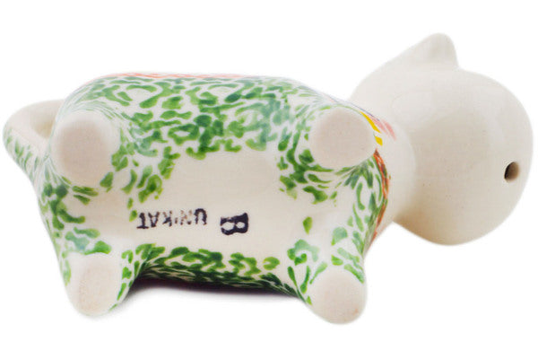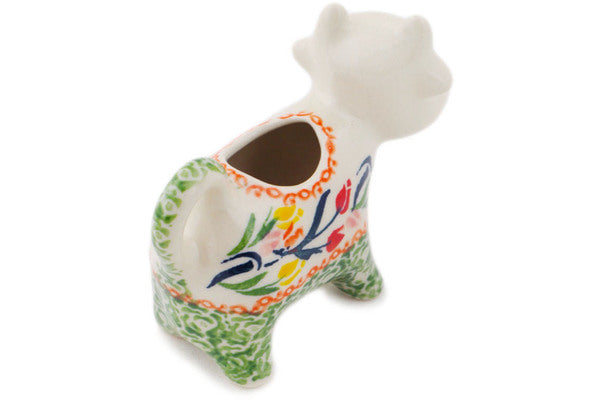 This Tulip Ring 2 oz Cow Shaped Creamer was handmade and hand decorated in Boleslawiec, Poland by skilled artisans according to old traditional methods. This Polish stoneware is microwave, dishwasher, freezer, and oven safe up to 480°F. It does not contain lead or cadmium. It is part of the Tulip Ring Collection.