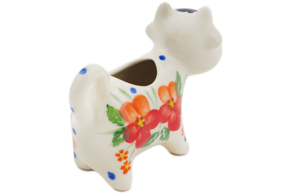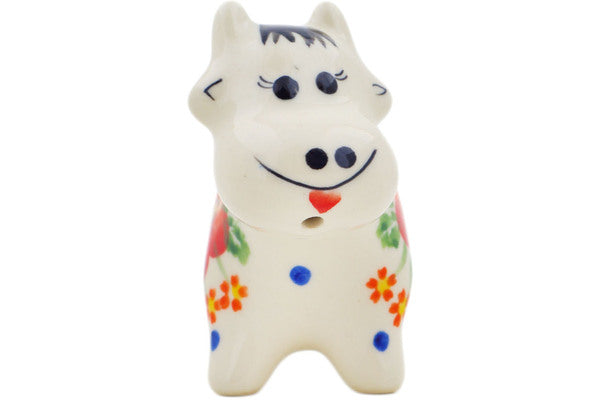 This Vermilion Clusters 2 oz Cow Shaped Creamer was handmade and hand decorated in Boleslawiec, Poland by skilled artisans according to old traditional methods. This Polish stoneware is microwave, dishwasher, freezer, and oven safe up to 480°F. It does not contain lead or cadmium. It is part of the Vermilion Clusters Collection.