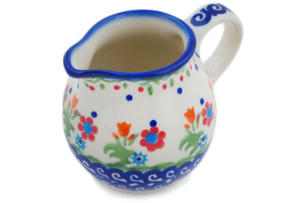 This Spring Flowers 4 oz Creamer was handmade and hand decorated in Boleslawiec, Poland by skilled artisans according to old traditional methods. This Polish stoneware is microwave, dishwasher, freezer, and oven safe up to 480°F. It does not contain lead or cadmium. It is part of the Spring Flowers Collection.
