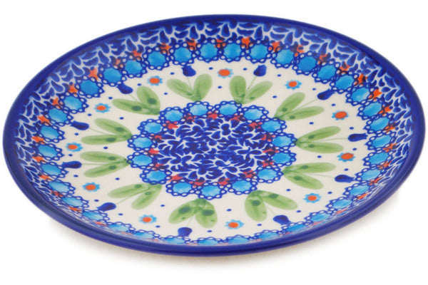 This Blue Tulip Garden 7½-inch Dessert Plate was handmade and hand decorated in Boleslawiec, Poland by skilled artisans according to old traditional methods. This is a Polish pottery Signature Unikat, which means that it has been hand painted with both sponges and brushes and it is signed by the artist who painted it. Unikat pieces are the most intricate works of art. Larger Unikat items take hours of very careful work to finish. This Polish stoneware is microwave, dishwasher, freezer, and oven safe up to 480°F. It does not contain lead or cadmium. It is part of the Blue Tulip Garden Collection.
