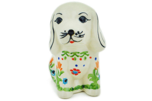This Spring Flowers 4" Dog Figurine was handmade and hand decorated in Boleslawiec, Poland by skilled artisans according to old traditional methods. This Polish stoneware is microwave, dishwasher, freezer, and oven safe up to 480°F. It does not contain lead or cadmium. It is part of the Spring Flowers Collection.