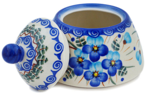This Blue Pansy 4" Jar with Lid was handmade and hand decorated in Boleslawiec, Poland by skilled artisans according to old traditional methods. This Polish stoneware is microwave, dishwasher, freezer, and oven safe up to 480°F. It does not contain lead or cadmium. It is part of the Blue Pansy Collection.