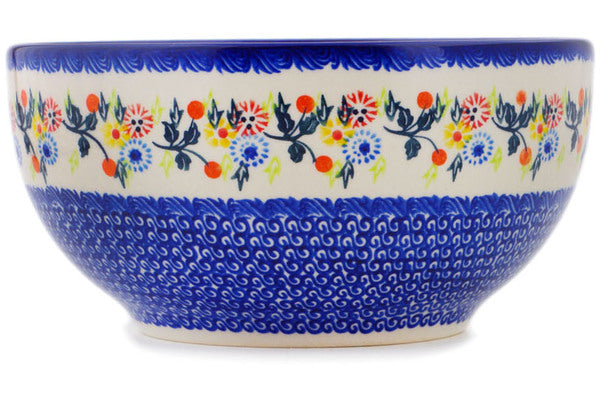 This Pastel Spring Wreath 9" Mixing bowl, serving bowl was handmade and hand decorated in Boleslawiec, Poland by skilled artisans according to old traditional methods. This Polish stoneware is microwave, dishwasher, freezer, and oven safe up to 480°F. It does not contain lead or cadmium. It is part of the Pastel Spring Wreath Collection.