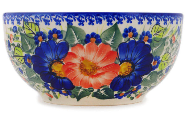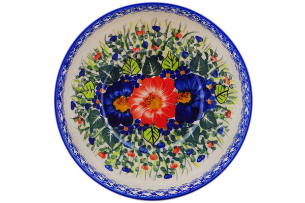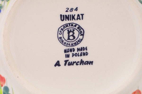 This Poppy Trio 9" Mixing bowl, serving bowl was handmade and hand decorated in Boleslawiec, Poland by skilled artisans according to old traditional methods. This is a Polish pottery Signature Unikat, which means that it has been hand painted with both sponges and brushes and it is signed by the artist who painted it. Unikat pieces are the most intricate works of art. Larger Unikat items take hours of very careful work to finish. This Polish stoneware is microwave, dishwasher, freezer, and oven safe up to 480°F. It does not contain lead or cadmium. It is part of the Poppy Trio Collection.
