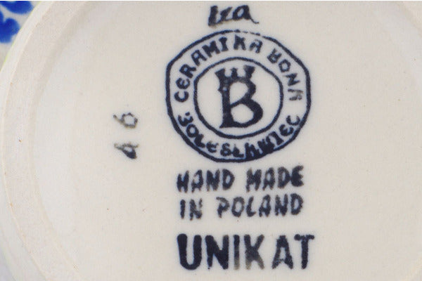 This Metamorphosis 13 oz Mug was handmade and hand decorated in Boleslawiec, Poland by skilled artisans according to old traditional methods. This Polish stoneware is microwave, dishwasher, freezer, and oven safe up to 480°F. It does not contain lead or cadmium. It is part of the Metamorphosis Collection.