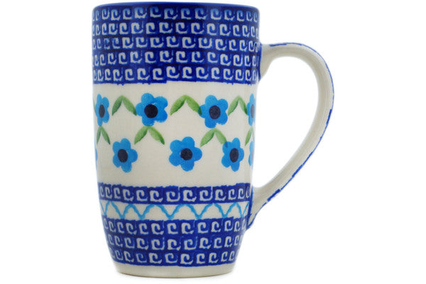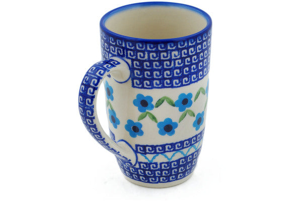 This Greek Daisies 14 oz Mug was handmade and hand decorated in Boleslawiec, Poland by skilled artisans according to old traditional methods. This Polish stoneware is microwave, dishwasher, freezer, and oven safe up to 480°F. It does not contain lead or cadmium. It is part of the Greek Daisies Collection.