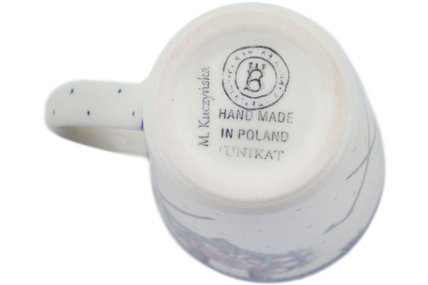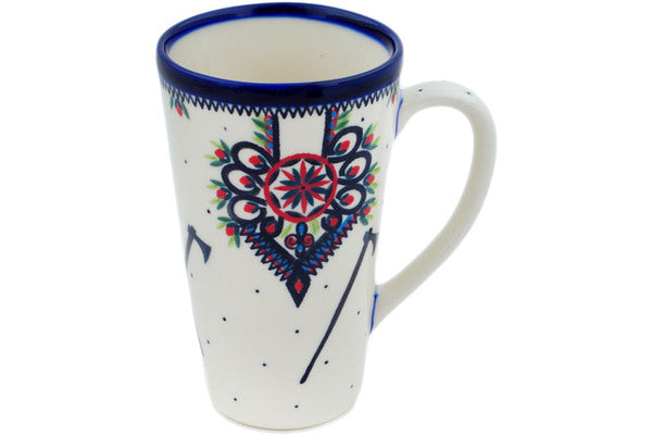 This Parzenica 14 oz Mug was handmade and hand decorated in Boleslawiec, Poland by skilled artisans according to old traditional methods. This is a Polish pottery Signature Unikat, which means that it has been hand painted with both sponges and brushes and it is signed by the artist who painted it. Unikat pieces are the most intricate works of art. Larger Unikat items take hours of very careful work to finish. This Polish stoneware is microwave, dishwasher, freezer, and oven safe up to 480°F. It does not contain lead or cadmium. It is part of the Parzenica Collection.