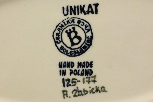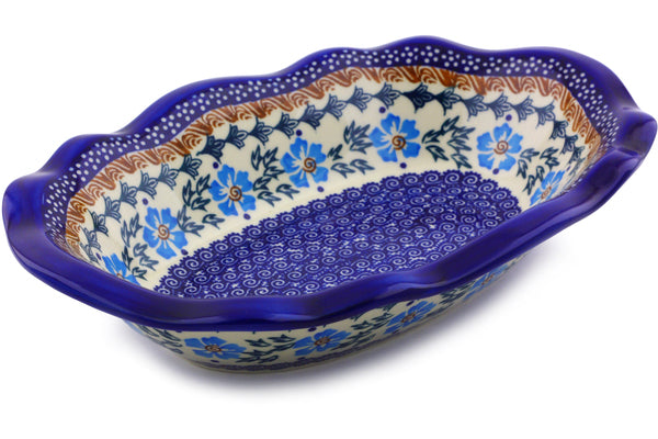 This Blue Cornflower 11" Oval Bowl was handmade and hand decorated in Boleslawiec, Poland by skilled artisans according to old traditional methods. This Polish stoneware is microwave, dishwasher, freezer, and oven safe up to 480°F. It does not contain lead or cadmium. It is part of the Blue Cornflower Collection.