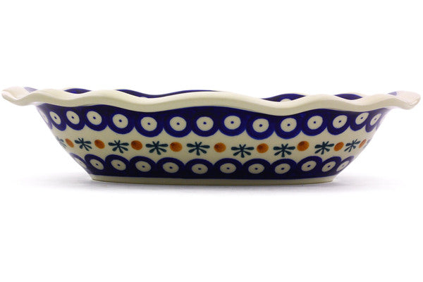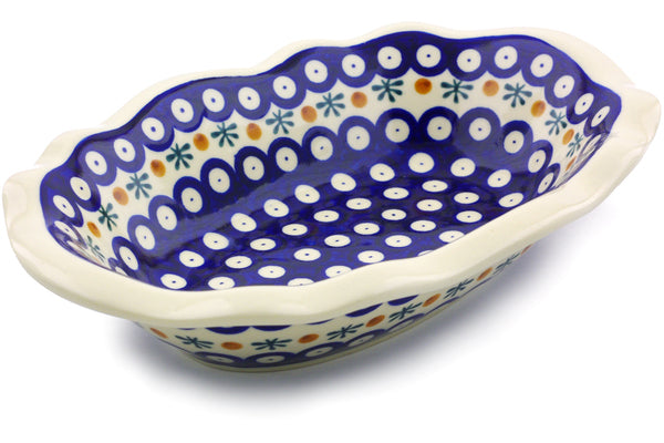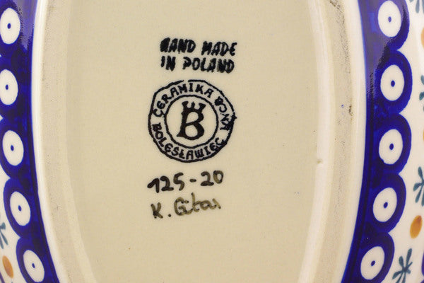 This Mosquito 11" Oval Bowl was handmade and hand decorated in Boleslawiec, Poland by skilled artisans according to old traditional methods. This Polish stoneware is microwave, dishwasher, freezer, and oven safe up to 480°F. It does not contain lead or cadmium. It is part of the Mosquito Collection.