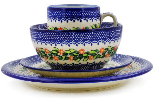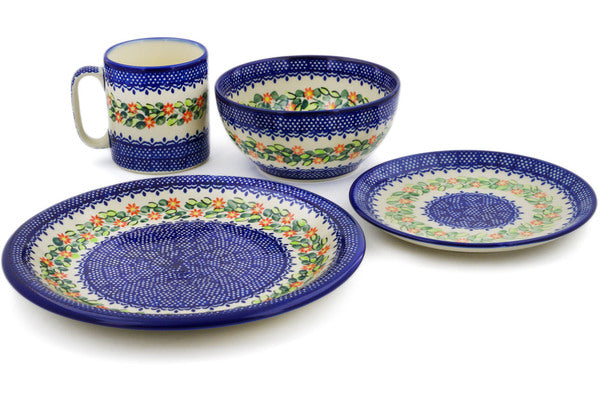 This Elegant Garland Place Setting was handmade and hand decorated in Boleslawiec, Poland by skilled artisans according to old traditional methods. This Polish stoneware is microwave, dishwasher, freezer, and oven safe up to 480°F. It does not contain lead or cadmium. It is part of the Elegant Garland Collection.