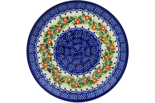 This Elegant Garland 7½-inch Dessert Plate was handmade and hand decorated in Boleslawiec, Poland by skilled artisans according to old traditional methods. This Polish stoneware is microwave, dishwasher, freezer, and oven safe up to 480°F. It does not contain lead or cadmium. It is part of the Elegant Garland Collection.