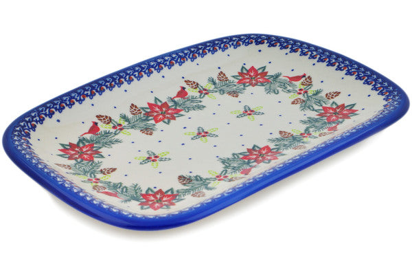 This Cardinal's Home 13" Platter was handmade and hand decorated in Boleslawiec, Poland by skilled artisans according to old traditional methods. This is a Polish pottery Signature Unikat, which means that it has been hand painted with both sponges and brushes and it is signed by the artist who painted it. Unikat pieces are the most intricate works of art. Larger Unikat items take hours of very careful work to finish. This Polish stoneware is microwave, dishwasher, freezer, and oven safe up to 480°F. It does not contain lead or cadmium. It is part of the Cardinal's Home Collection.
