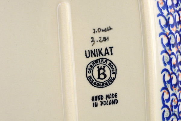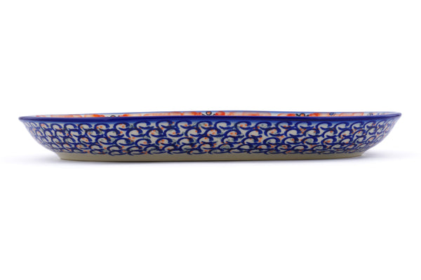 This Poppy Passion 13" Platter was handmade and hand decorated in Boleslawiec, Poland by skilled artisans according to old traditional methods. This is a Polish pottery Signature Unikat, which means that it has been hand painted with both sponges and brushes and it is signed by the artist who painted it. Unikat pieces are the most intricate works of art. Larger Unikat items take hours of very careful work to finish. This Polish stoneware is microwave, dishwasher, freezer, and oven safe up to 480°F. It does not contain lead or cadmium. It is part of the Poppy Passion Collection.