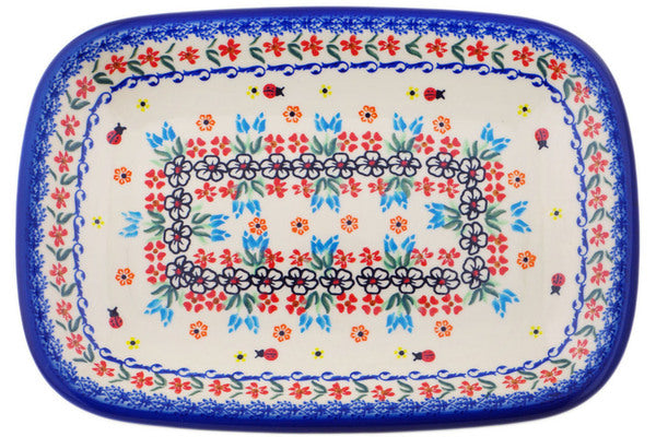 This Fanciful Ladybug 14" Platter was handmade and hand decorated in Boleslawiec, Poland by skilled artisans according to old traditional methods. This Polish stoneware is microwave, dishwasher, freezer, and oven safe up to 480°F. It does not contain lead or cadmium. It is part of the Fanciful Ladybug Collection.