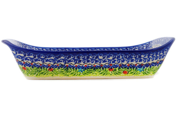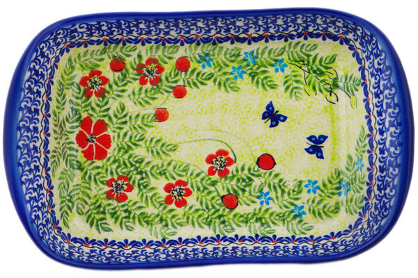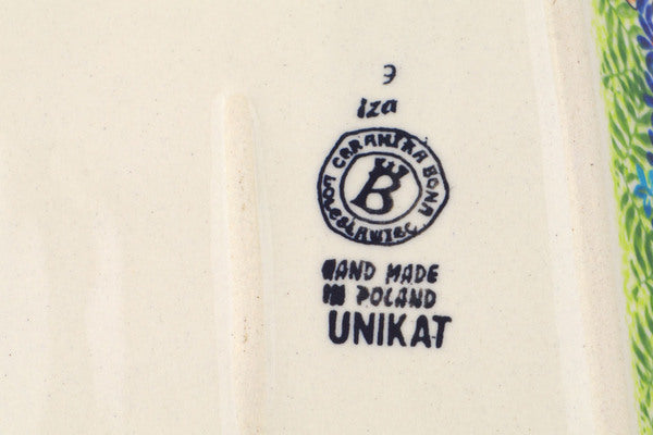 This Metamorphosis 11" Platter with Handles was handmade and hand decorated in Boleslawiec, Poland by skilled artisans according to old traditional methods. This Polish stoneware is microwave, dishwasher, freezer, and oven safe up to 480°F. It does not contain lead or cadmium. It is part of the Metamorphosis Collection.