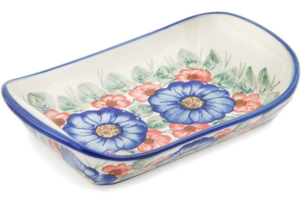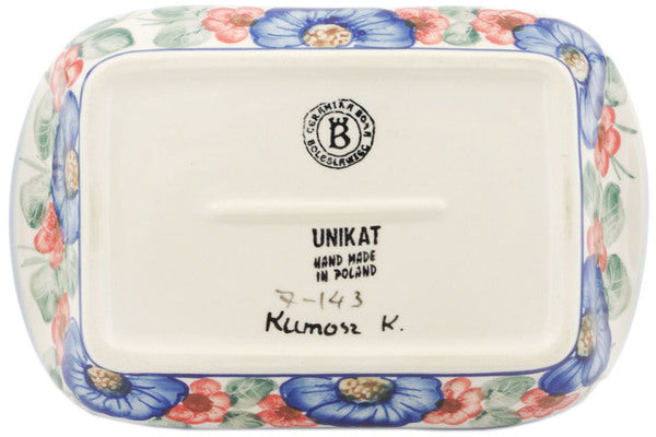 This Flowers In Bloom 9" Platter with Handles was handmade and hand decorated in Boleslawiec, Poland by skilled artisans according to old traditional methods. This is a Polish pottery Signature Unikat, which means that it has been hand painted with both sponges and brushes and it is signed by the artist who painted it. Unikat pieces are the most intricate works of art. Larger Unikat items take hours of very careful work to finish. This Polish stoneware is microwave, dishwasher, freezer, and oven safe up to 480°F. It does not contain lead or cadmium. It is part of the Flowers In Bloom Collection.