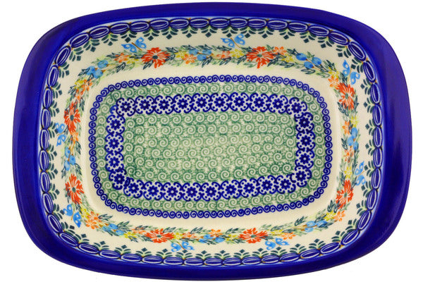Rectangular Baker with Handles 11" Ring Of Flowers Theme UNIKAT
