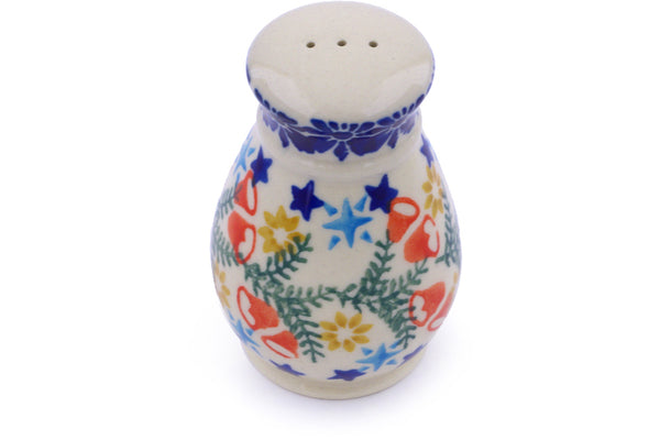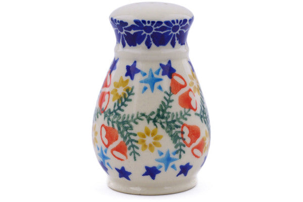 This Wreath Of Bells 3" Salt Shaker was handmade and hand decorated in Boleslawiec, Poland by skilled artisans according to old traditional methods. This Polish stoneware is microwave, dishwasher, freezer, and oven safe up to 480°F. It does not contain lead or cadmium. It is part of the Wreath Of Bells Collection.