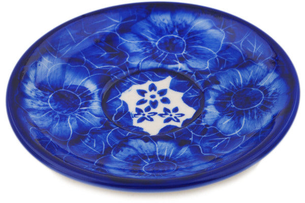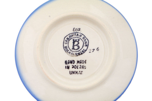 This Divine Cobalt 5" Saucer was handmade and hand decorated in Boleslawiec, Poland by skilled artisans according to old traditional methods. This is a Polish pottery Signature Unikat, which means that it has been hand painted with both sponges and brushes and it is signed by the artist who painted it. Unikat pieces are the most intricate works of art. Larger Unikat items take hours of very careful work to finish. This Polish stoneware is microwave, dishwasher, freezer, and oven safe up to 480°F. It does not contain lead or cadmium. It is part of the Divine Cobalt Collection.