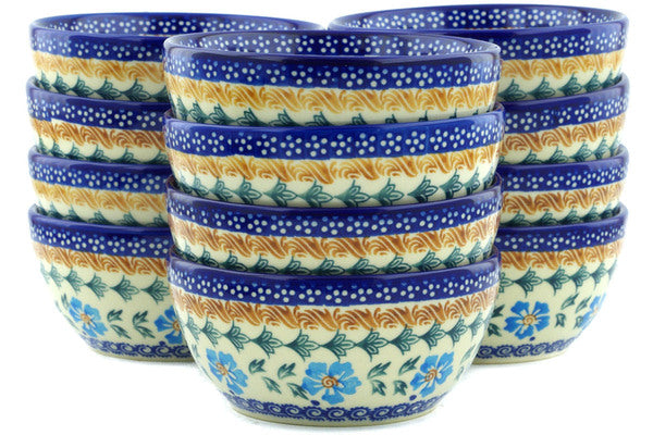 This Blue Cornflower Set of 12 Bowls was handmade and hand decorated in Boleslawiec, Poland by skilled artisans according to old traditional methods. This Polish stoneware is microwave, dishwasher, freezer, and oven safe up to 480°F. It does not contain lead or cadmium. It is part of the Blue Cornflower Collection.