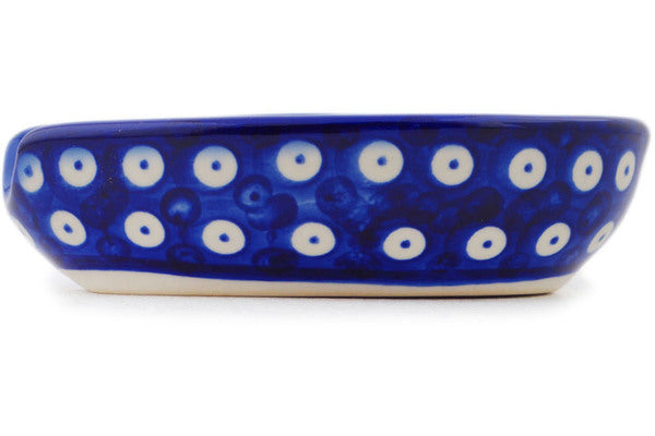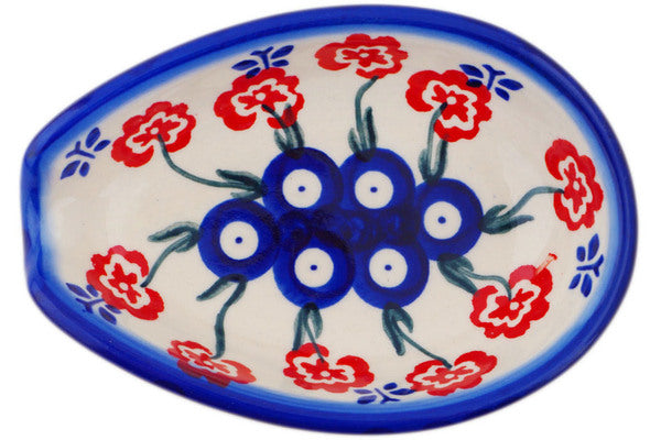 This Blue Eye Spring 5" Spoon Rest was handmade and hand decorated in Boleslawiec, Poland by skilled artisans according to old traditional methods. This Polish stoneware is microwave, dishwasher, freezer, and oven safe up to 480°F. It does not contain lead or cadmium. It is part of the Blue Eye Spring Collection.