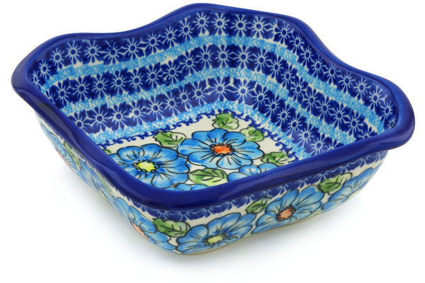 Square Bowl 8" Bold Blue Poppies Theme UNIKAT