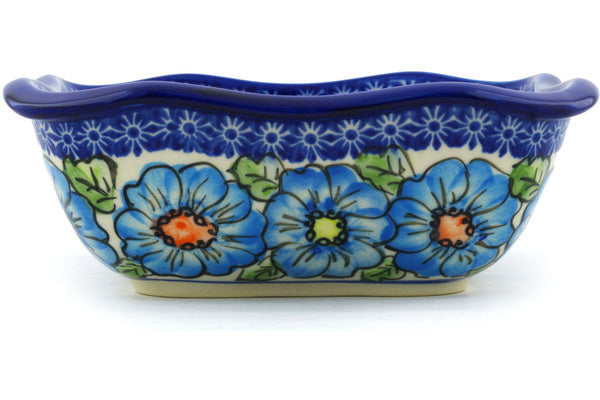 This Bold Blue Poppies 8" Square Bowl was handmade and hand decorated in Boleslawiec, Poland by skilled artisans according to old traditional methods. This is a Polish pottery Signature Unikat, which means that it has been hand painted with both sponges and brushes and it is signed by the artist who painted it. Unikat pieces are the most intricate works of art. Larger Unikat items take hours of very careful work to finish. This Polish stoneware is microwave, dishwasher, freezer, and oven safe up to 480°F. It does not contain lead or cadmium. It is part of the Bold Blue Poppies Collection.