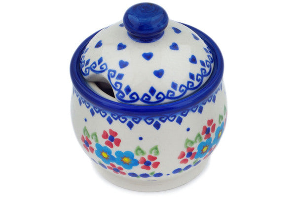 This Hearts And Flowers 9 oz Sugar Bowl was handmade and hand decorated in Boleslawiec, Poland by skilled artisans according to old traditional methods. This Polish stoneware is microwave, dishwasher, freezer, and oven safe up to 480°F. It does not contain lead or cadmium. It is part of the Hearts And Flowers Collection.