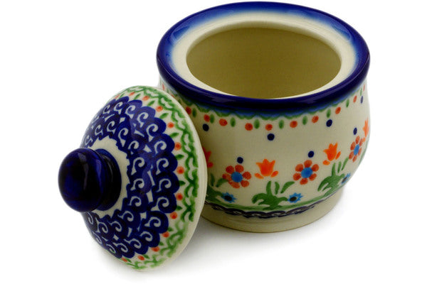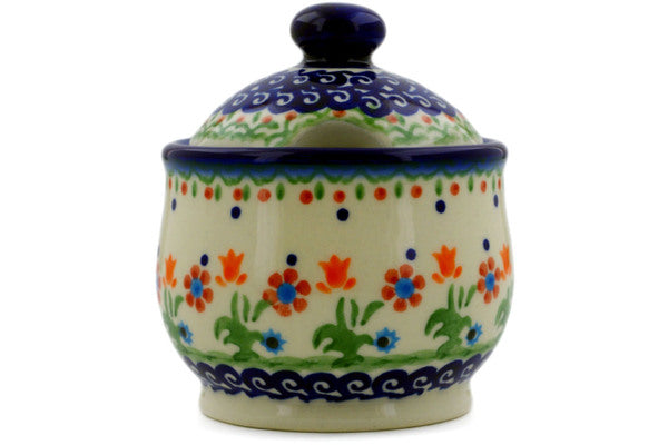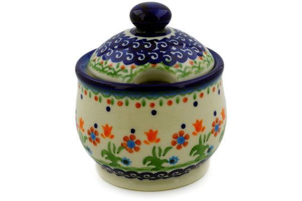 This Spring Flowers 9 oz Sugar Bowl was handmade and hand decorated in Boleslawiec, Poland by skilled artisans according to old traditional methods. This Polish stoneware is microwave, dishwasher, freezer, and oven safe up to 480°F. It does not contain lead or cadmium. It is part of the Spring Flowers Collection.