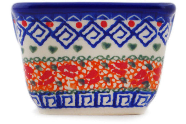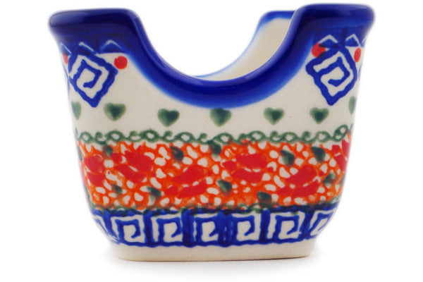 This Grecian Fire Tulips 3" Sugar Packet Holder was handmade and hand decorated in Boleslawiec, Poland by skilled artisans according to old traditional methods. This Polish stoneware is microwave, dishwasher, freezer, and oven safe up to 480°F. It does not contain lead or cadmium. It is part of the Grecian Fire Tulips Collection.